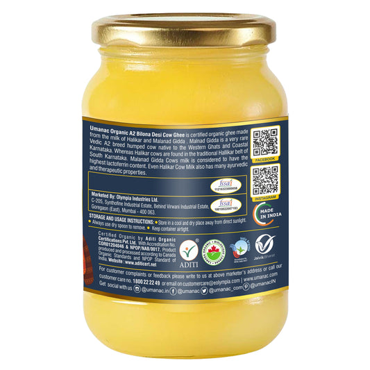 Umanac Organic A2 Bilona Ghee- 500Ml