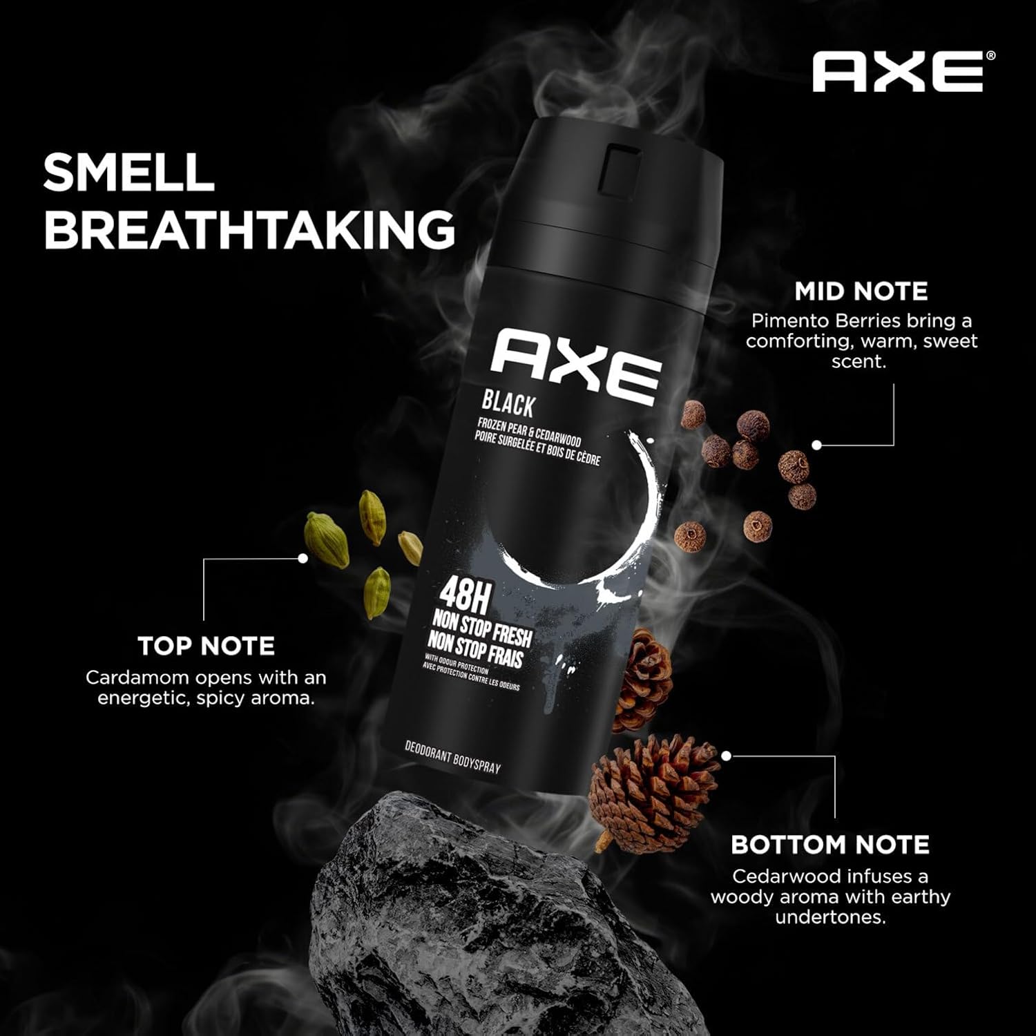 Axe Black Deodorant Body Spray for Men | 48H* Odour Protection | Odour-Combatting Zinc Technology | Frozen Pear and Cedarwood Scent|150ml