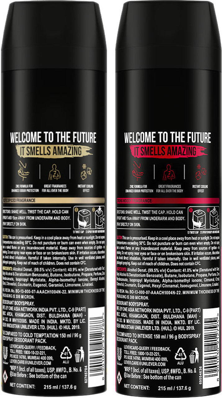 AXE Gold Temptation & Intense Deodorant Spray for Men (215 ml, Pack of 2)