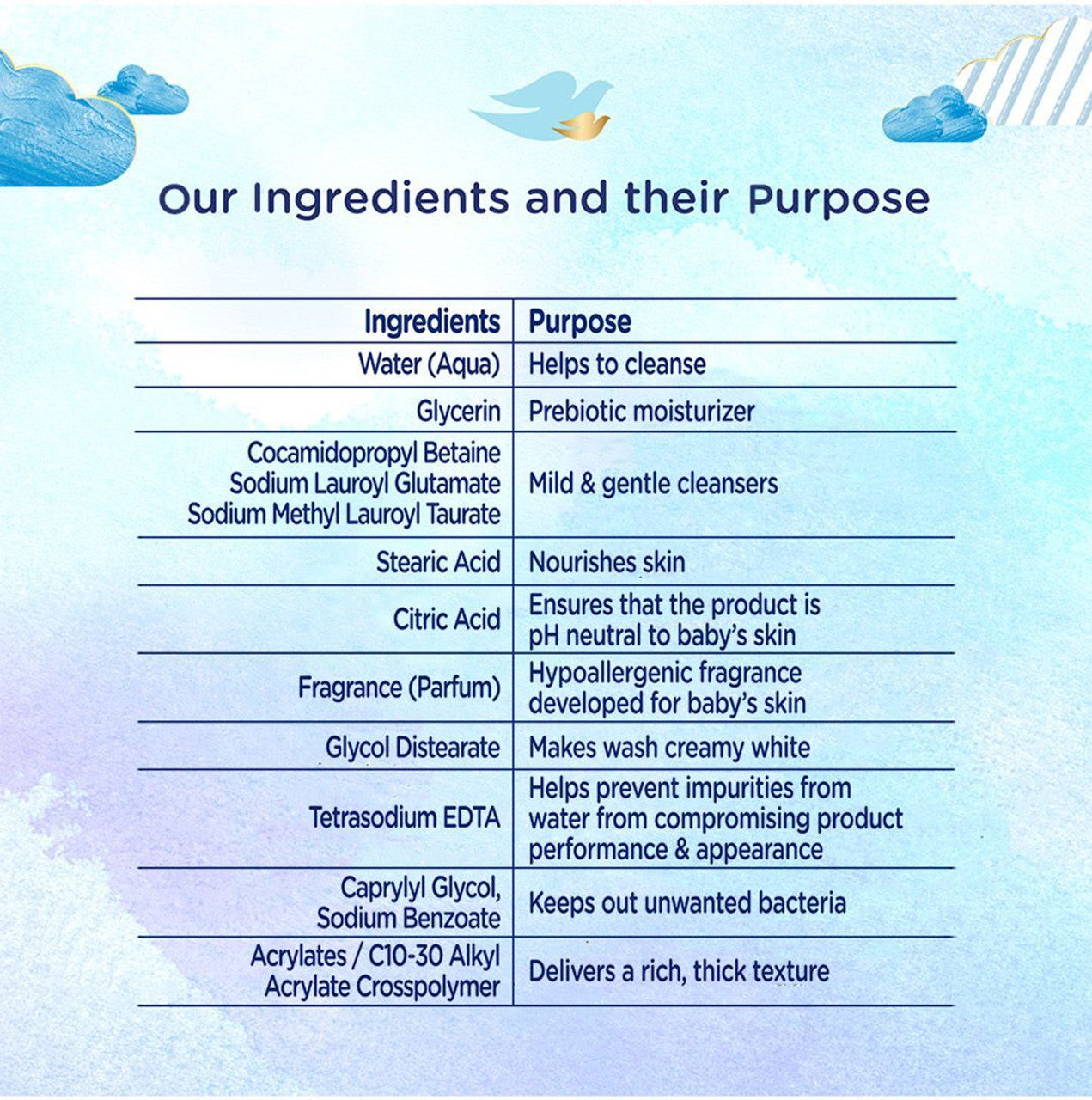 The 200 ml and 400 ml sizes of Baby Dove Rich Moisture Head-to-Toe Wash are available, featuring a tear-free and hypoallergenic formula suitable even for newborns