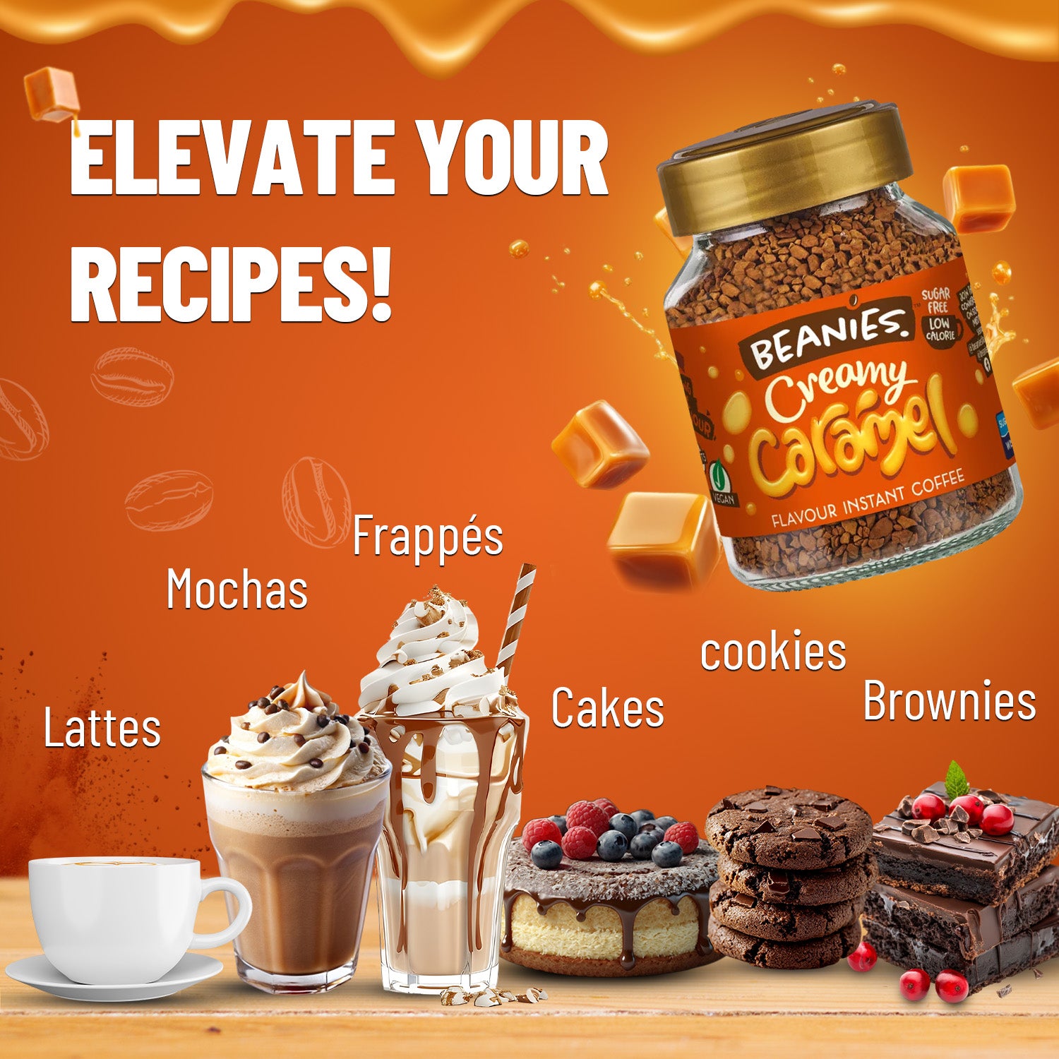 Indulge in the rich, velvety blend of high-quality coffee and smooth caramel. Beanies Creamy Caramel Instant Coffee delivers a luxurious, flavorful coffee experience in every cup.