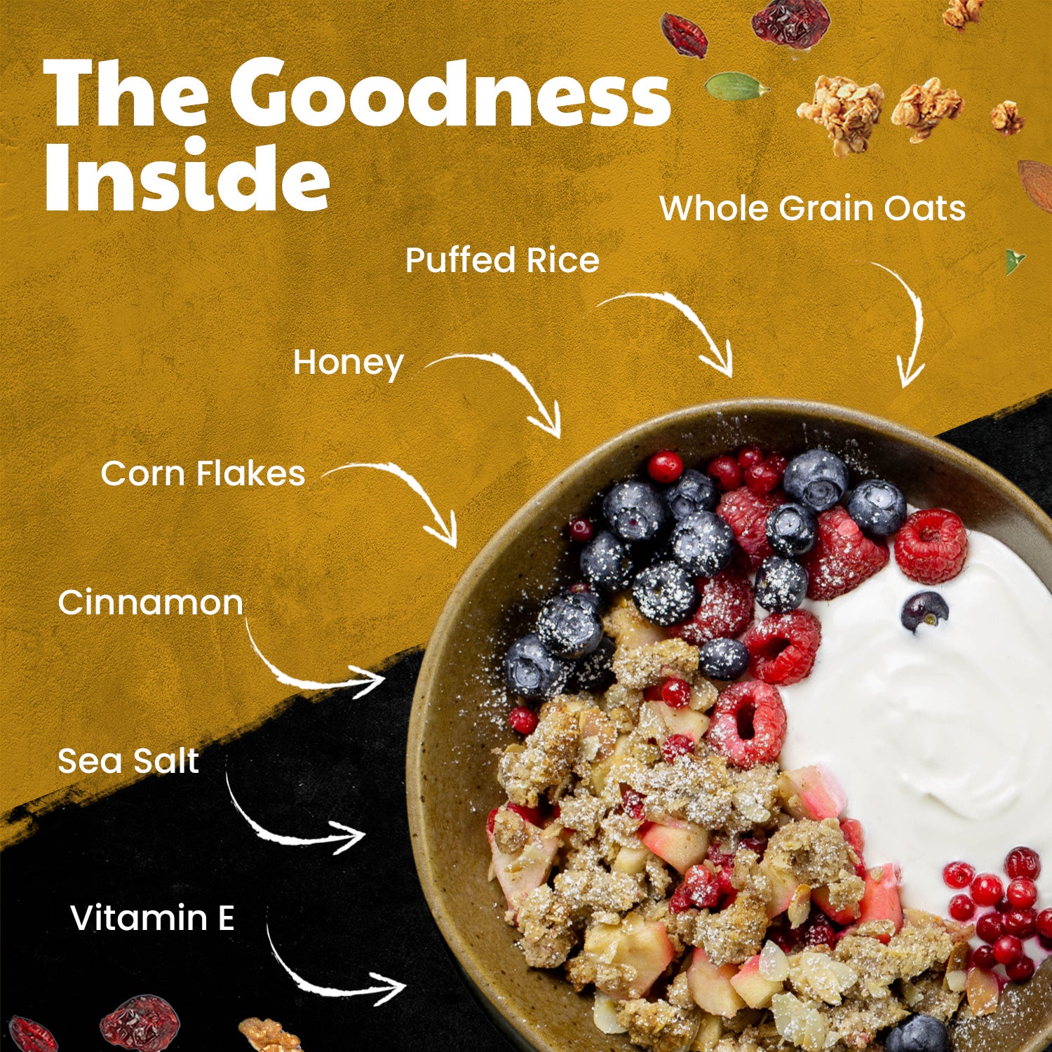 VEGAN & GLUTEN-FREE- These crunchy clusters are completely vegan, gluten-free, and perfect for a wide range of dietary demands.The perfect alternative for plant-based, allergy-friendly breakfast options.