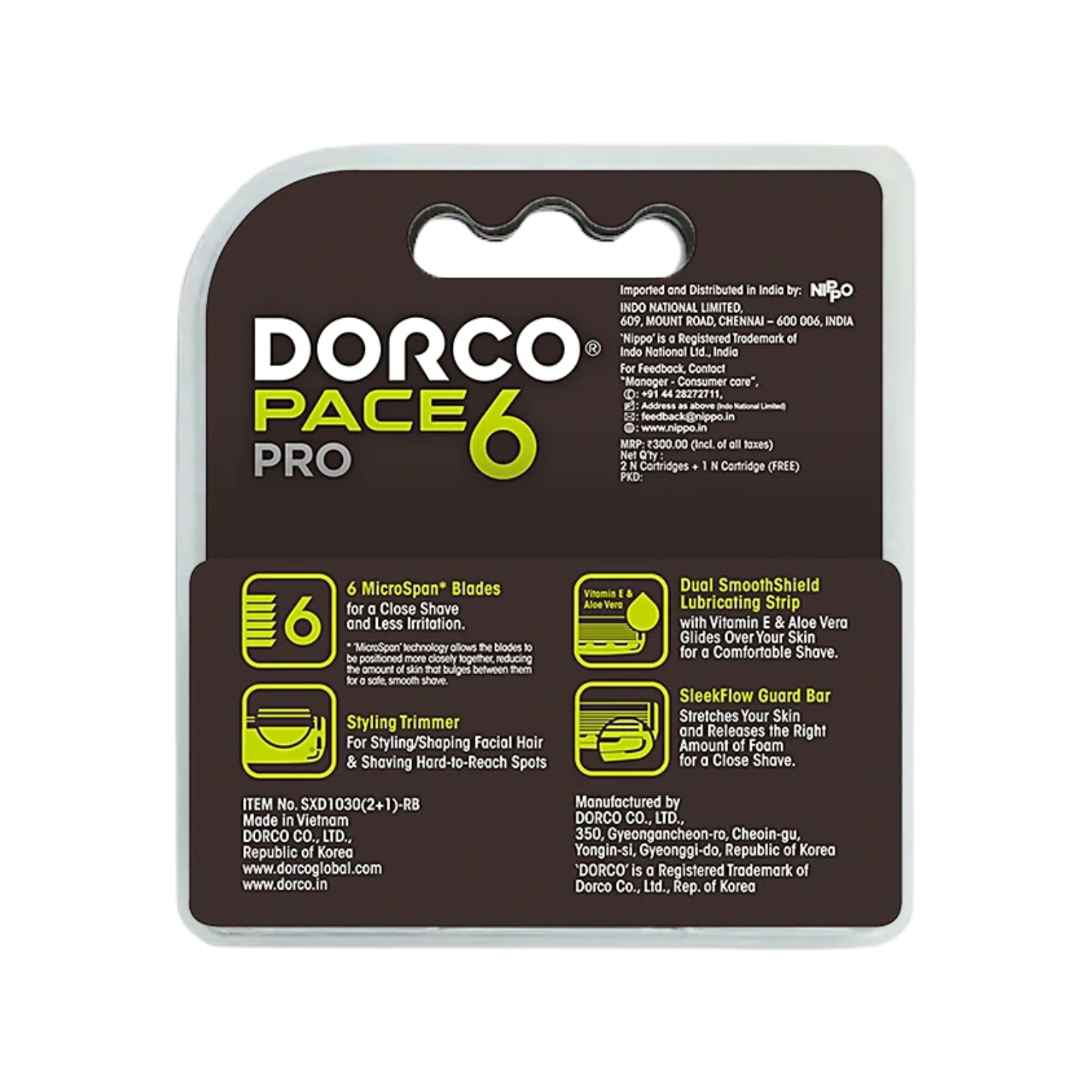 Dorco Pace 6 Pro Cartridge, Pack of 3