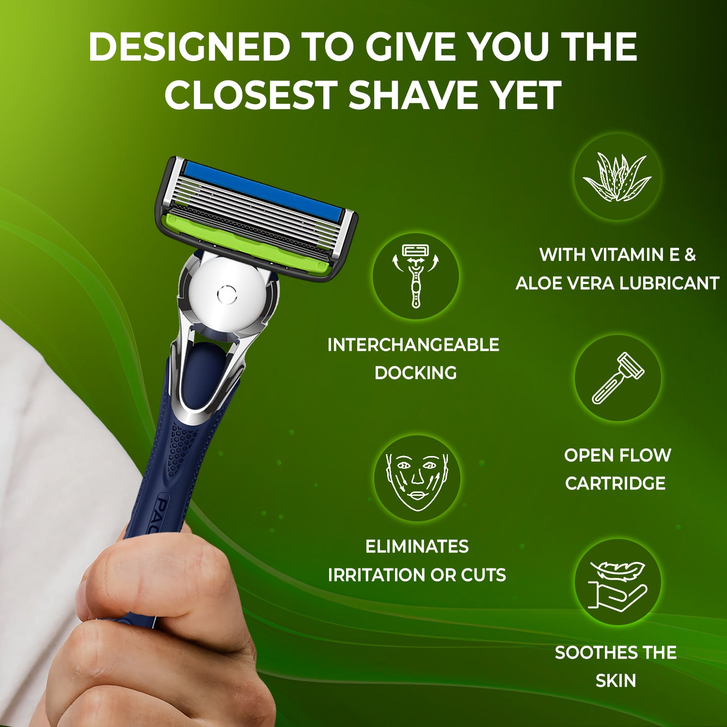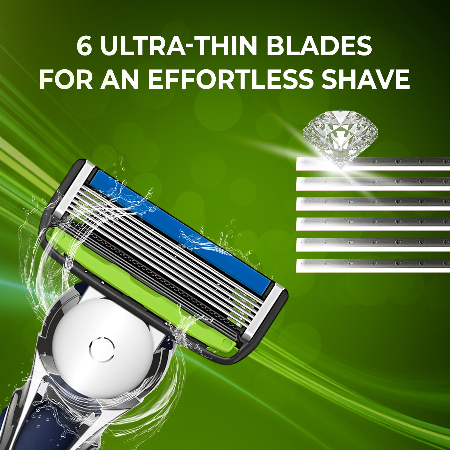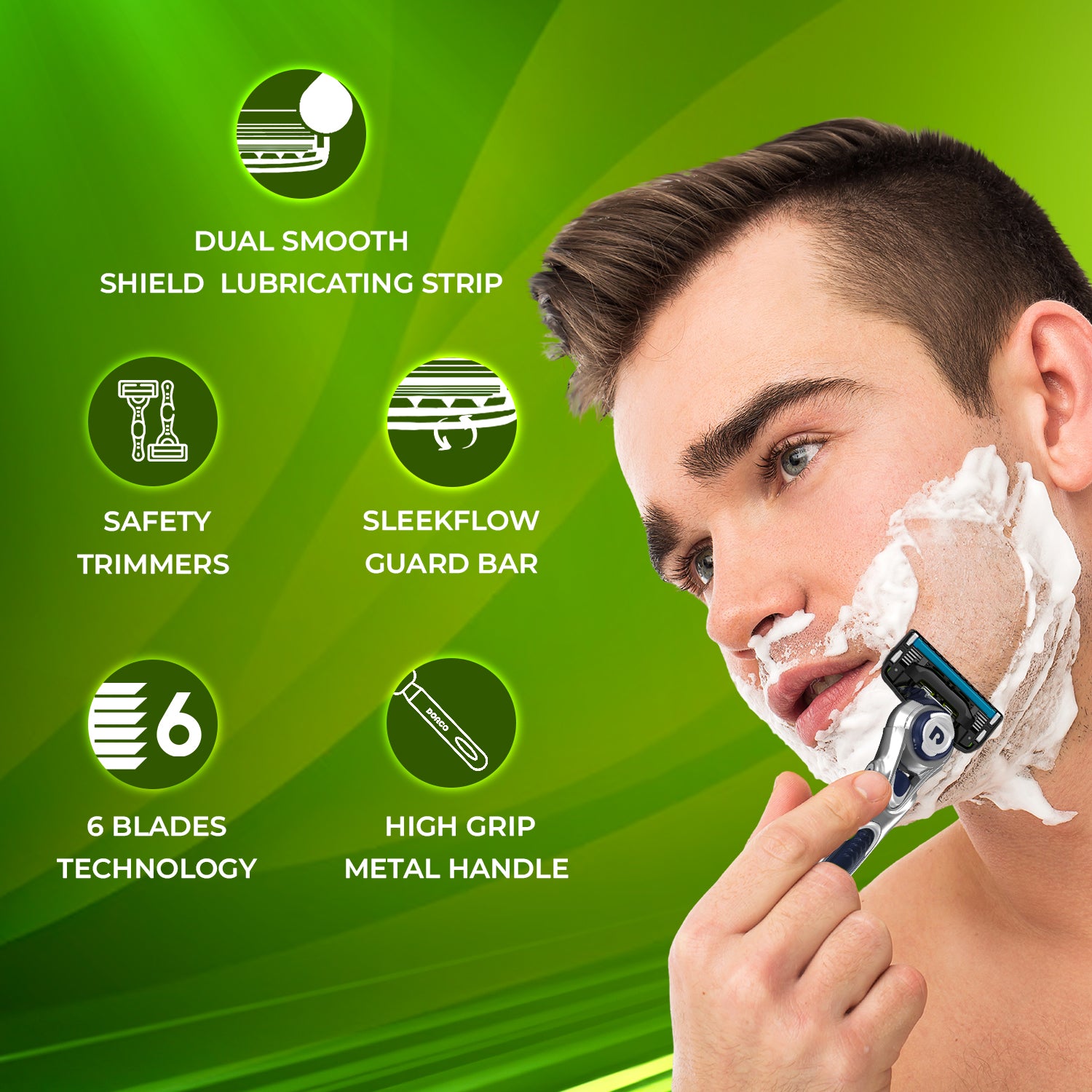 Nikhil Bansal Six-blade razor for a close, smooth shave comfortable, precise and gentle on the skin.