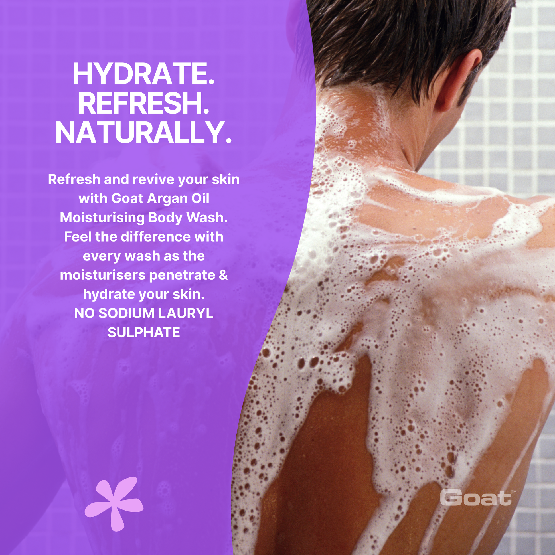 Refresh and revive your skin with Goat Moisturising Body Wash. Feel the difference with every wash as the moisturisers penetrate and hydrate your skin.