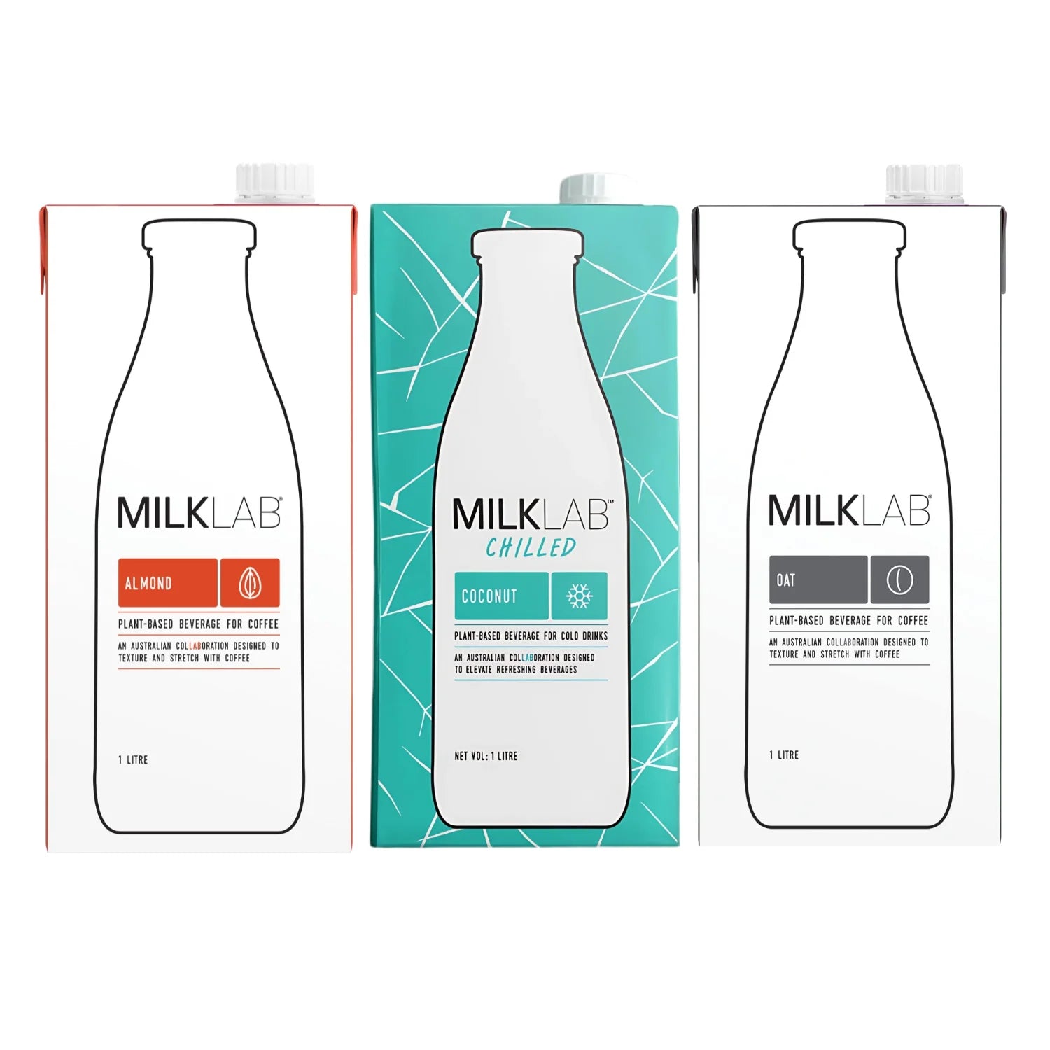 MILKLAB Barista Milk Pack of 3 – Coconut, Almond, Oats | Lactose-free- 1 liter.