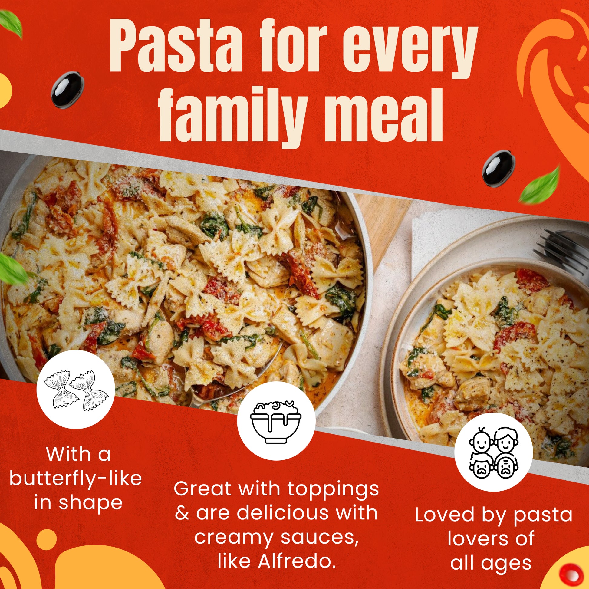 Maher M. Light, firm bowtie pasta cooks evenly pairs perfectly with sauces for delicious meals.
