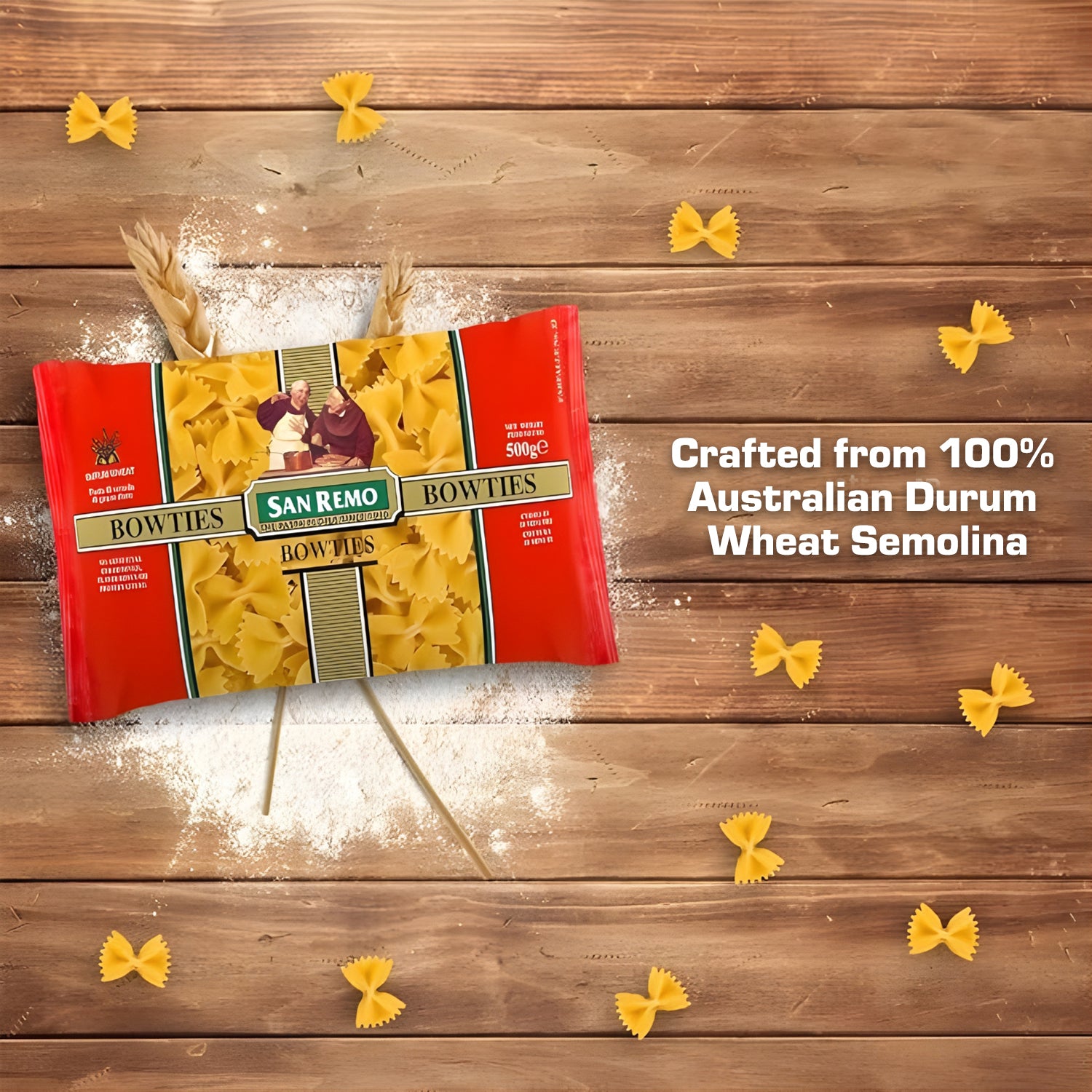 CLASSIC BOWTIES (FARFALLE) SHAPE: San Remo Bowties Pasta, also known as farfalle, features a classic butterfly-inspired shape. Designed to hold sauces evenly, the pinched centre and smooth edges help capture flavours beautifully, making every bite well-balanced and satisfying.
