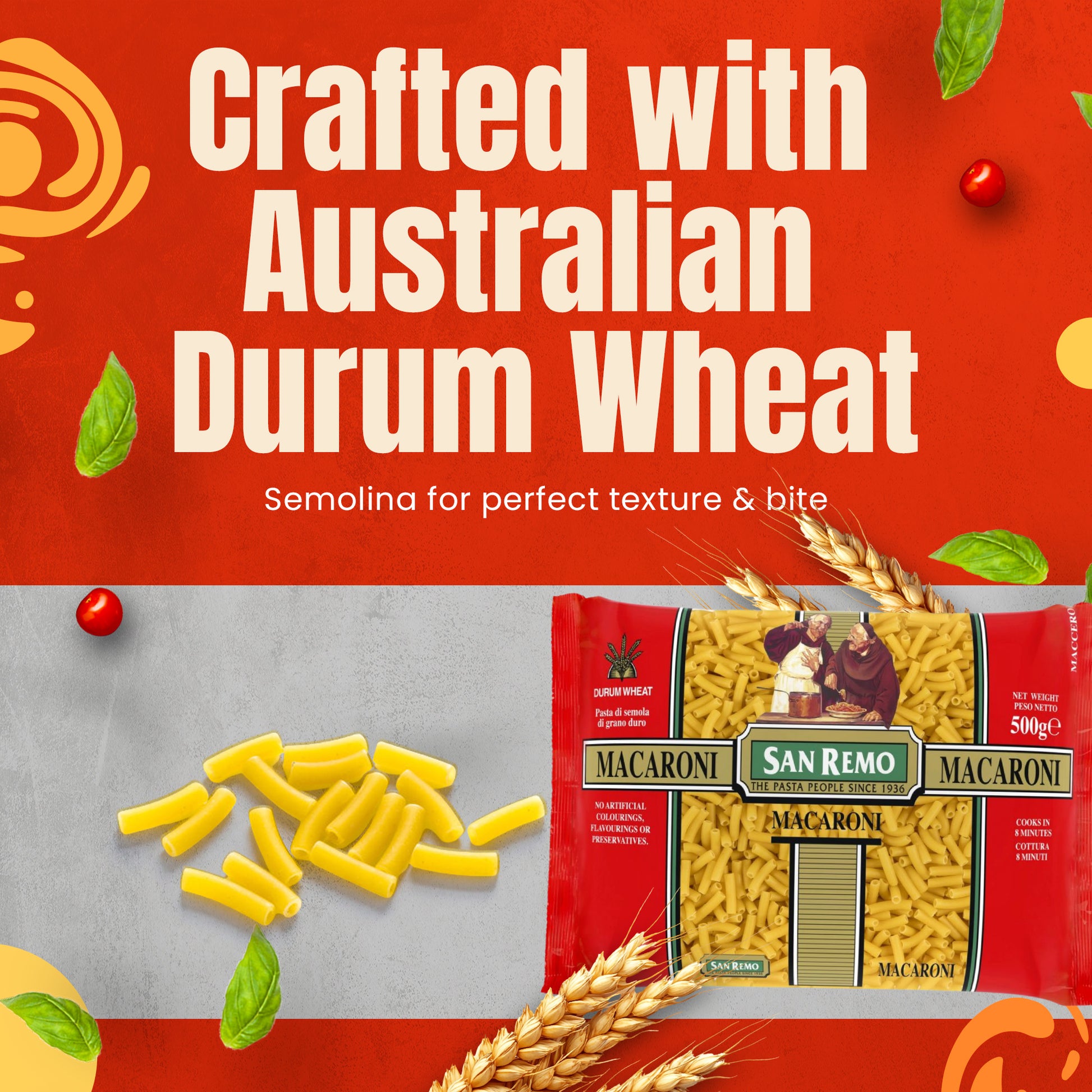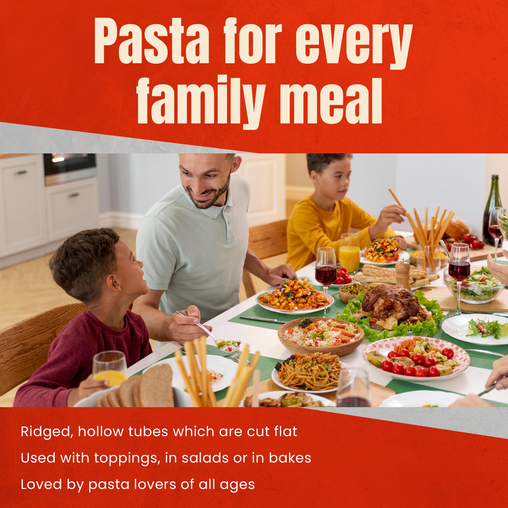 Macaroni pasta packet are ridged, hollow tubes which are cut flat at the ends. This is a very versatile shape which can be used in a variety of ways, with toppings, in salads or in bakes.