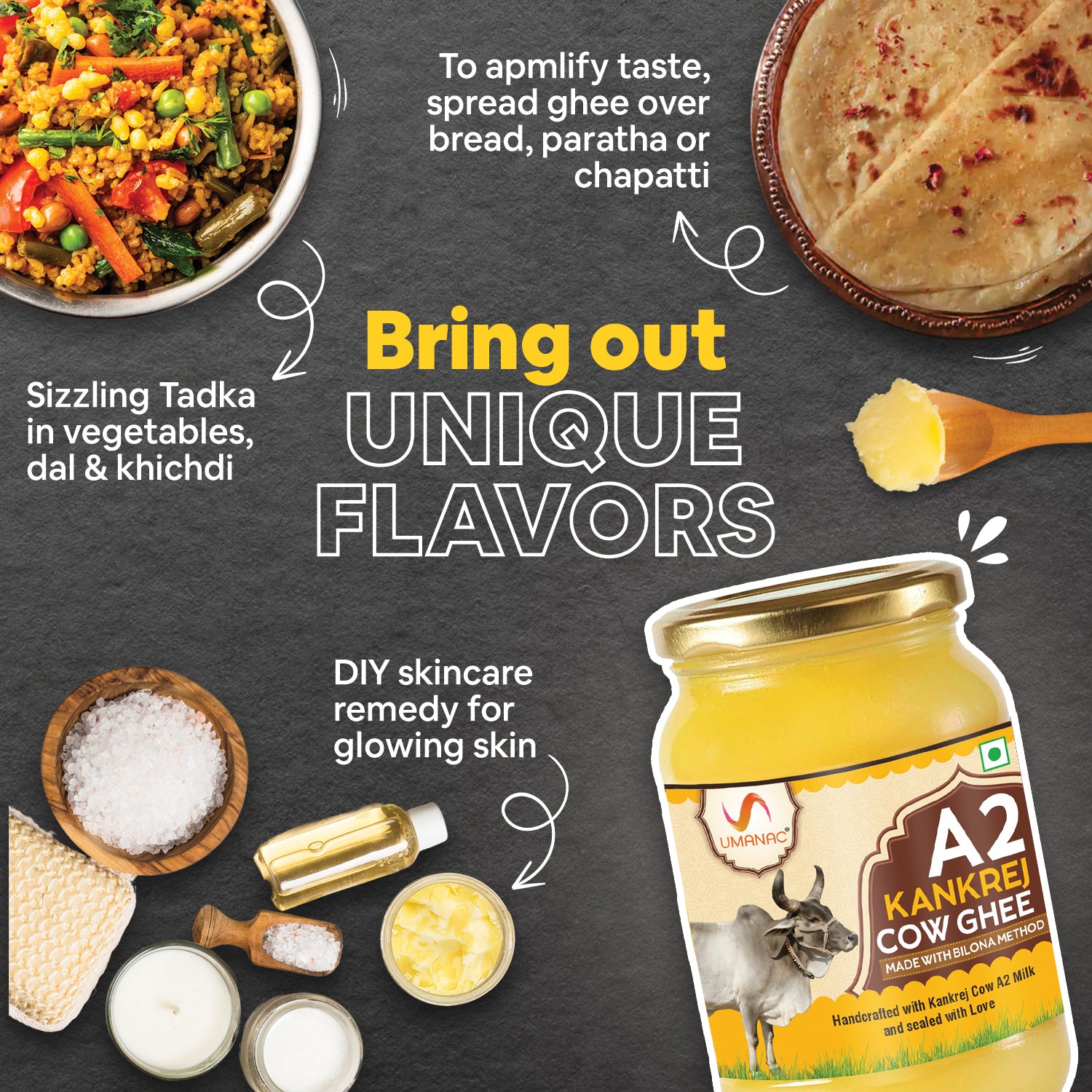 RICH TASTE- Our ghee is perfect for frying, sautéing, baking, and even spreading. It adds richness and depth to any culinary preparation. Indulge in the real taste of India with our A2 Kankrej Cow Ghee, which is ideal for boosting the flavor of your favorite foods and desserts.
