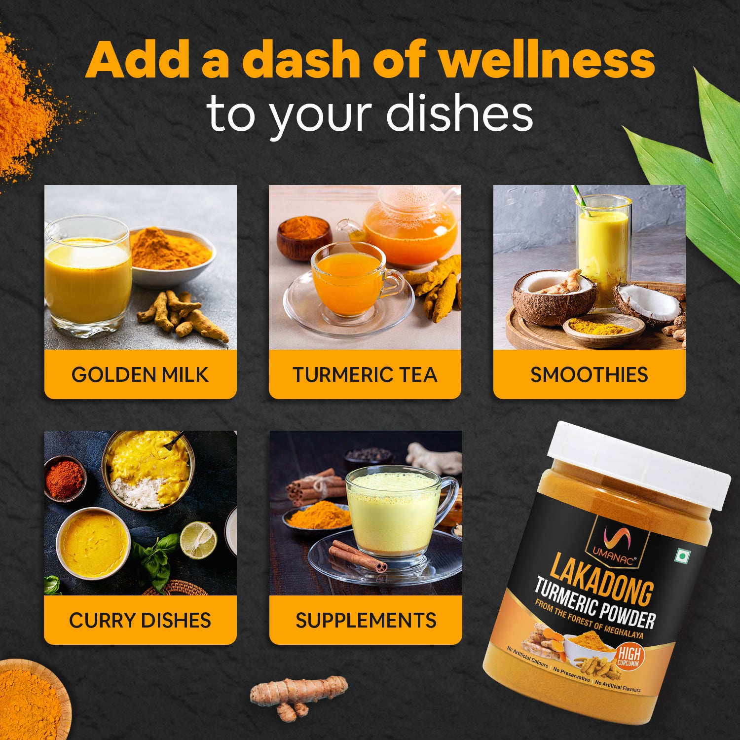 HEALTHIER LIFESTYLE- A sprinkle of Umanac Lakadong Turmeric Powder can improve the taste and aroma of curries, stews, soups, and rice meals, or it can be added to smoothies, teas, and juices to provide a nutritious boo