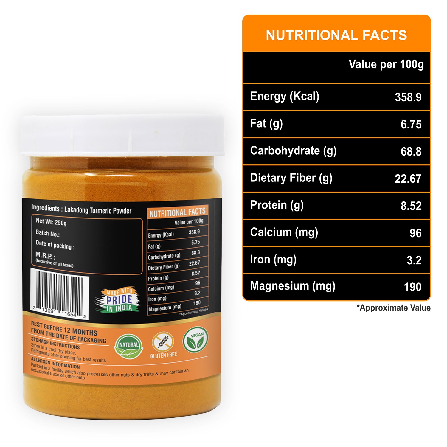 HEALTH BENEFITS- Lakadong turmeric is known for its anti-inflammatory, antioxidant, and anti-bacterial characteristics, which are thought to benefit overall health and well-being. Add it to your routine for a natural health boost or make it part of your beauty routine. Create innovative DIY recipes that will soothe and improve your skin unlike any other.